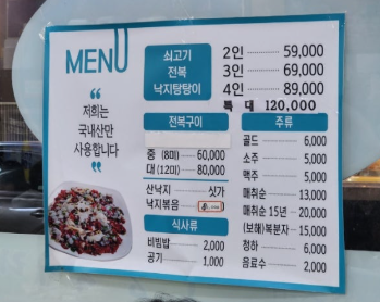 대표 메뉴는 낙지 탕탕이 등 낙지 요리가 일품인데요,