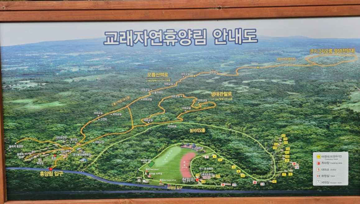 - 휴양림 숙소와 야영장 혼합 구조