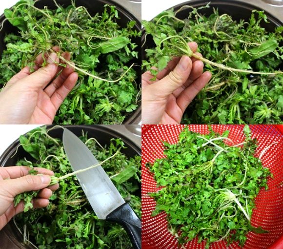 - 냉이, 달래는 뿌리 부분을 정리해 물에 담갔다가 사용하면 흙이 깔끔히 제거됩니다.
